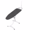 Deska z blatem o rozmiarze 38x120cm wykonanym z siatki metalowej. Blat taki zapewnia lepszy efekt prasowania dzięki przenikaniu pary. Nogi wykonane są z rurek o średnicy 38 mm, a ich konstrukcja zapewnia bardzo dobrą stabilność. Deska posiada regulację wysokości w zakresie 75-100cm, podstawę na żelazko profilowaną z blachy, antenkę na przewód od żelazka oraz gniazdo elektryczne (pod blatem) z przedłużaczem o długości 2m. Waga deski 8kg, stelaż lakierowany w kolorze białym, blokada przed samoczynnym rozkładaniem się nóg podczas przenoszenia czy przechowywania. Rozmiar po złożeniu: 168×52,5×6 cm.