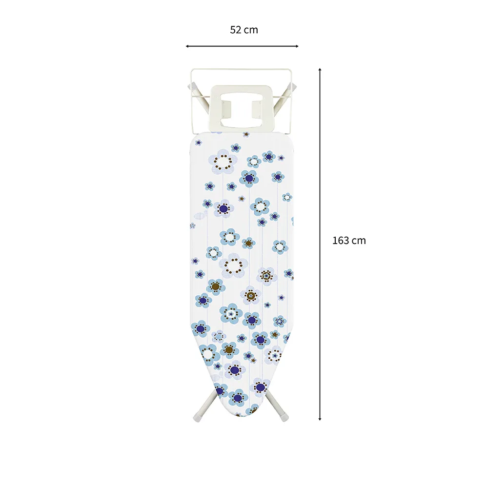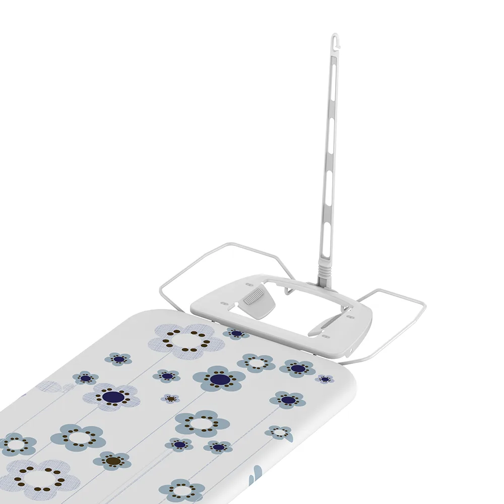 Stabilna deska z dużym blatem o rozmiarze 43x127cm. Bat wykonany jest z siatki metalowej, która przepuszcza parę i zapewnia lepszy efekt prasowania. Nogi wykonane są z rurek o średnicy 28mm. Deska posiada regulację wysokości w zakresie 75-97cm oraz mocną, specjalnie zaprojektowaną podstawę zarówno na żelazko zwykłe, jak i na żelazko ze stacją parową. Antenka na przewód od żelazka ułatwia prasowanie. Waga deski 8,5kg, stelaż w kolorze białym, blokada przed samoczynnym rozkładaniem się nóg podczas przenoszenia czy przechowywania. Rozmiar po złożeniu: 154x48x8 cm.