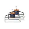 Komplet 2szt wieszaków na 3 pary spodni każdy. Wieszaki pokryte specjalnym materiałem, który zapobiega zsuwaniu się z nich ubrań. Dostępne w kolorze czarnym lub szarym.