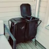 Podwójny stojak na worki do segregacji odpadów. Składany i łatwy do przenoszenia. Przeznaczony do użytku zarówno na zewnątrz, jak i w pomieszczeniu. Trwała, stalowa konstrukcja i praktyczne plastikowe pokrywy w kolorze czarnym. Przystosowany do worków foliowych 60-125 litrów. Worki należy dokupić we własnym zakresie.