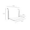 Suszarka do zamontowania na drzwiach, idealna do pomieszczeń o ograniczonej powierzchni. Suszarka łatwo się rozkłada, a po złożeniu zajmuje niewiele miejsca. Posiada dwa uchwyty na ręczniki lub szlafroki oraz miejsce na wieszaki do odzieży. Innowacyjna konstrukcja pozwala na korzystanie z nich gdy suszarka jest w pozycji rozłożonej, jak i po złożeniu. Powierzchnia suszenia 3,6m. Rozmiar po rozłożeniu: 55x32cm; waga 0,6kg, kolor biały.